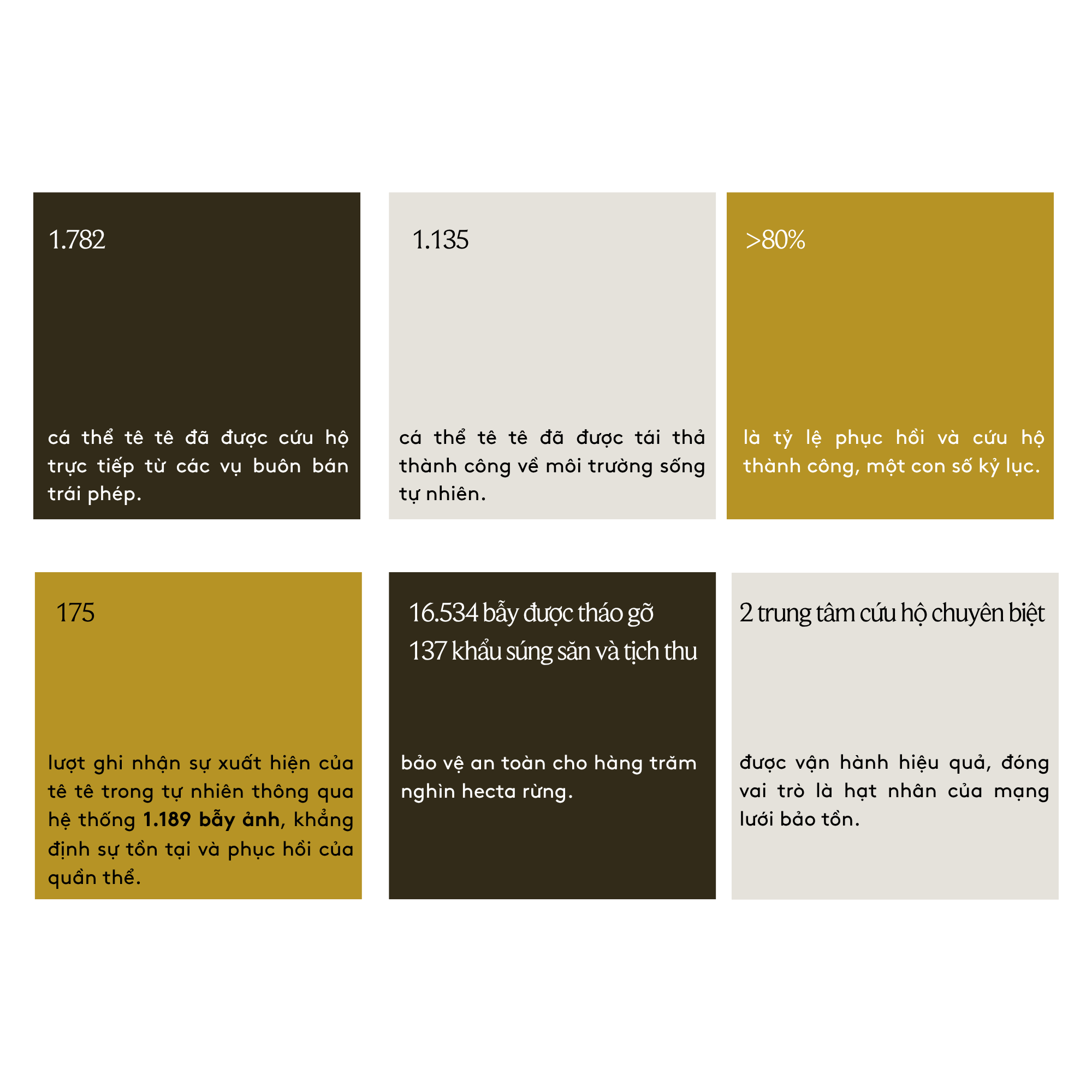 - Khôi phục quần thể: Cứu hộ, phục hồi, tái thả thành công các cá thể tê tê và bảo vệ an toàn các sinh cảnh sống trọng điểm của chúng.