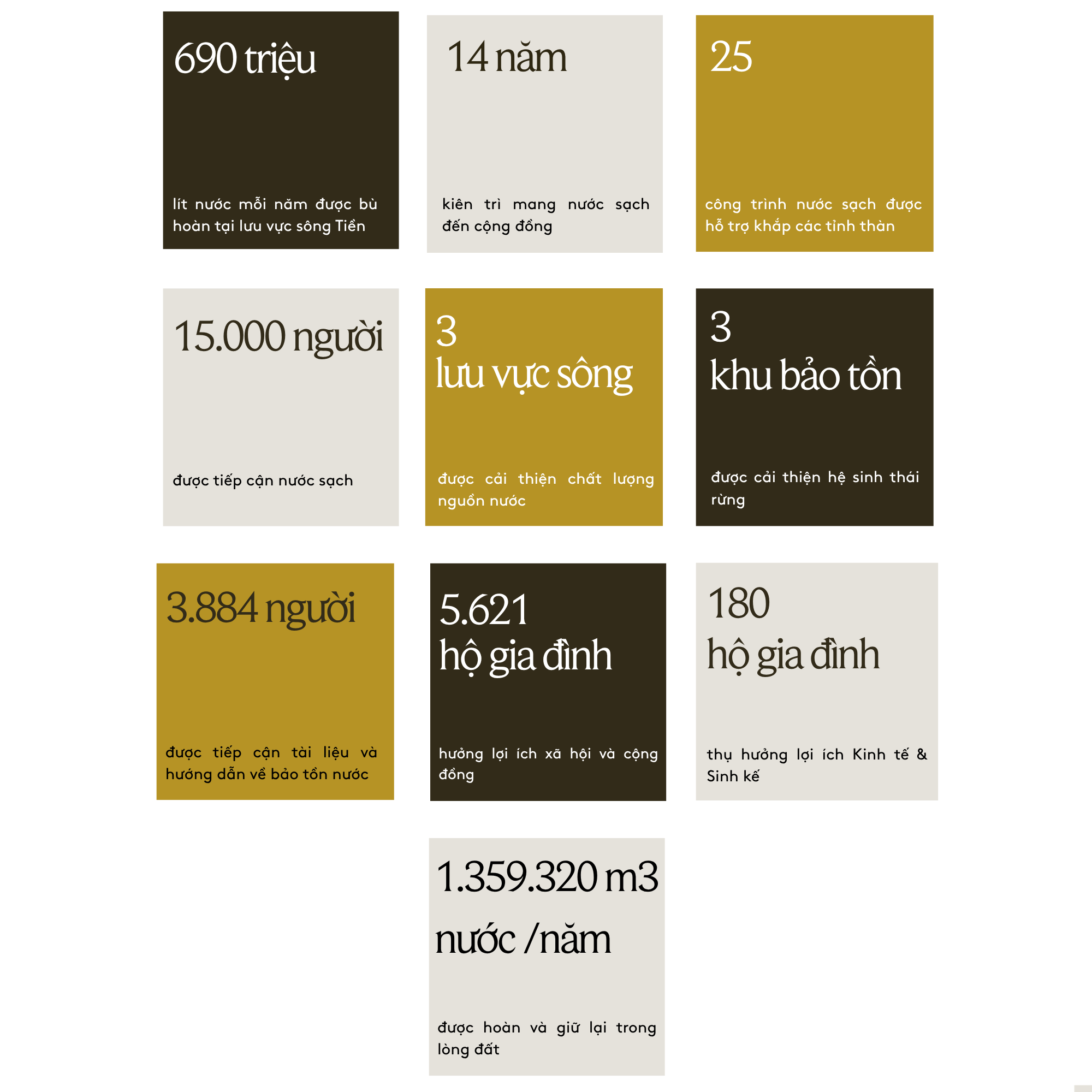 + 559,44 triệu lít nước/năm từ chương trình hợp tác bảo tồn nguồn nước.
