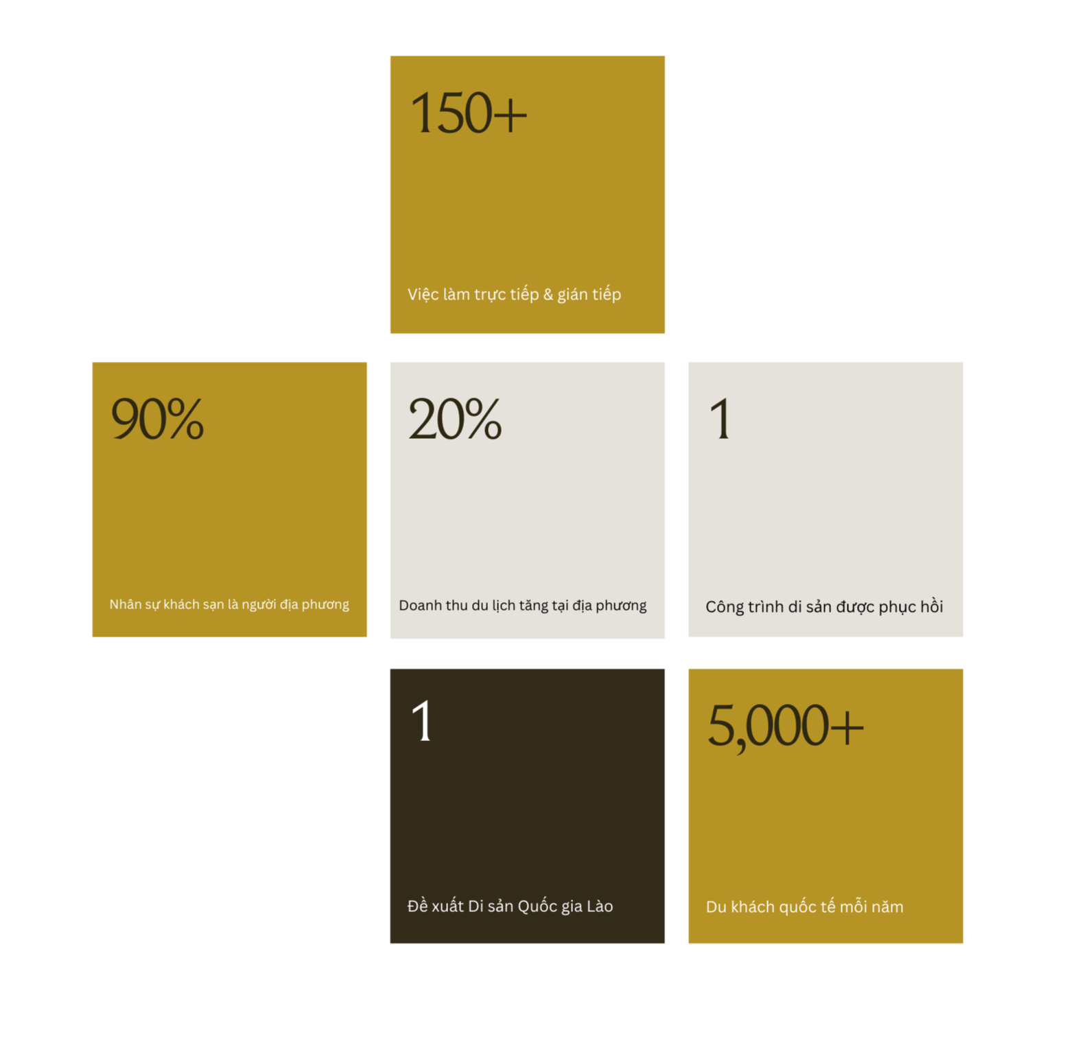 Cộng đồng: Dự án đã tạo ra việc làm trực tiếp và gián tiếp cho người dân địa phương trong các lĩnh vực lưu trú, dịch vụ và hoạt động văn hóa.
