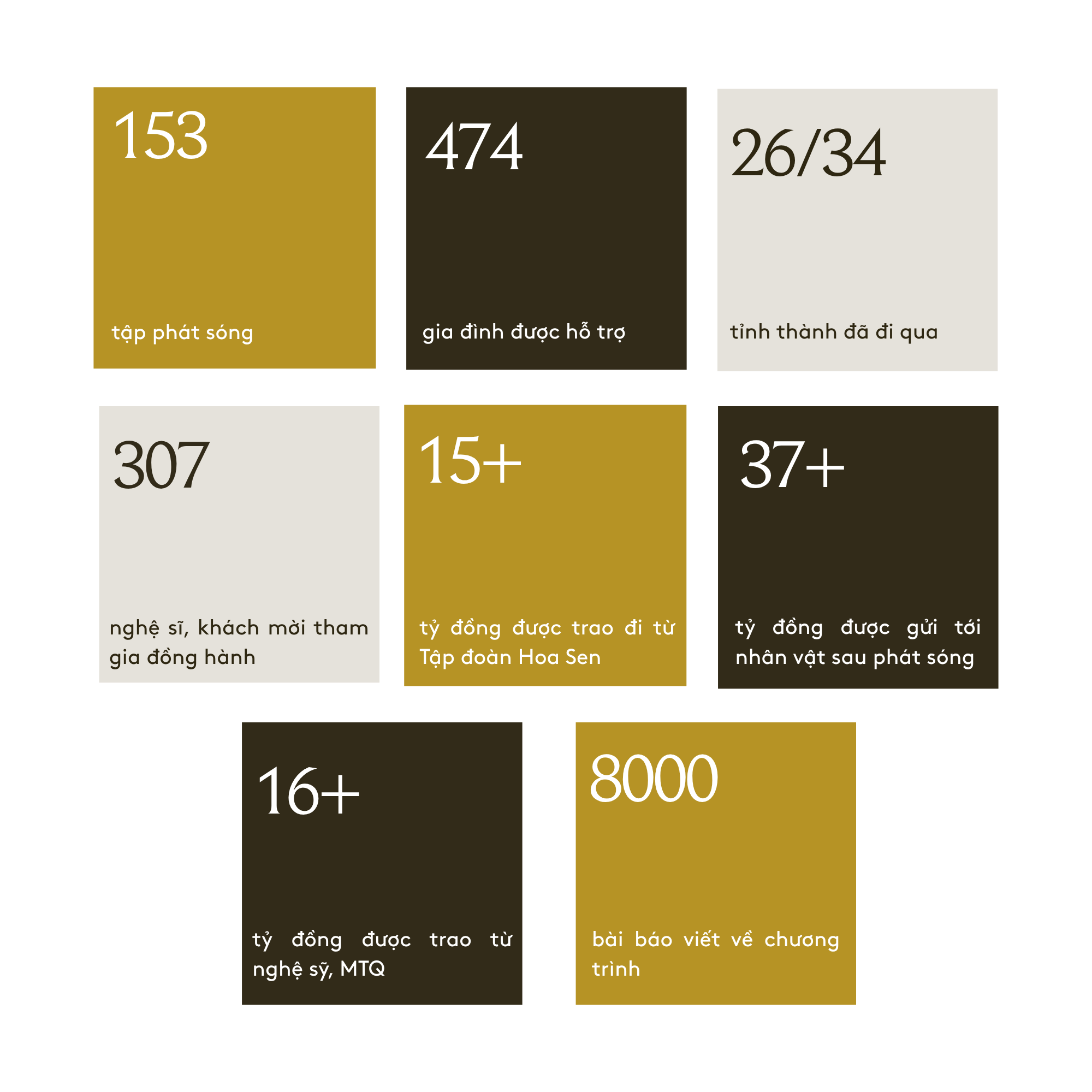 - Nhận được sự đồng hành từ 307 nghệ sĩ, người nổi tiếng.