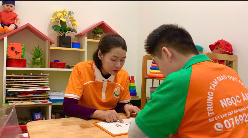 Năm 2020, Trung tâm Nghiên cứu và Ứng dụng Tâm lý - Giáo dục Ngọc Ân được bà Đào Thanh Hoàn sáng lập với sứ mệnh rõ ràng: thiết kế và vận hành một mô hình giáo dục đặc biệt toàn diện, “đo” được tiến bộ của từng học viên, “đọc” được nhu cầu thực sự của gia đình, và “dẫn” các em đi đến một điểm đến có phẩm giá - lao động có thu nhập, có quan hệ xã hội lành mạnh, có vai trò trong cộng đồng. Chỉ trong vài năm, mô hình này đã phát triển thành một hệ thống đa cơ sở, vận hành chuỗi dịch vụ liên hoàn như một “hệ sinh thái”. Tại đó, khâu đánh giá ban đầu được nối liền với đội ngũ can thiệp; quá trình can thiệp giáo dục đi kèm một kế hoạch giáo dục cá nhân (IEP) với mục tiêu, chỉ số, thời hạn rõ ràng; dữ liệu về hành vi và học tập của học viên được phản hồi định kỳ cho phụ huynh; gia đình có cổng thông tin riêng để tra cứu và nhận hướng dẫn thực hành tại nhà. Khi học viên sẵn sàng, các em sẽ bước sang giai đoạn thực nghiệm hướng nghiệp.