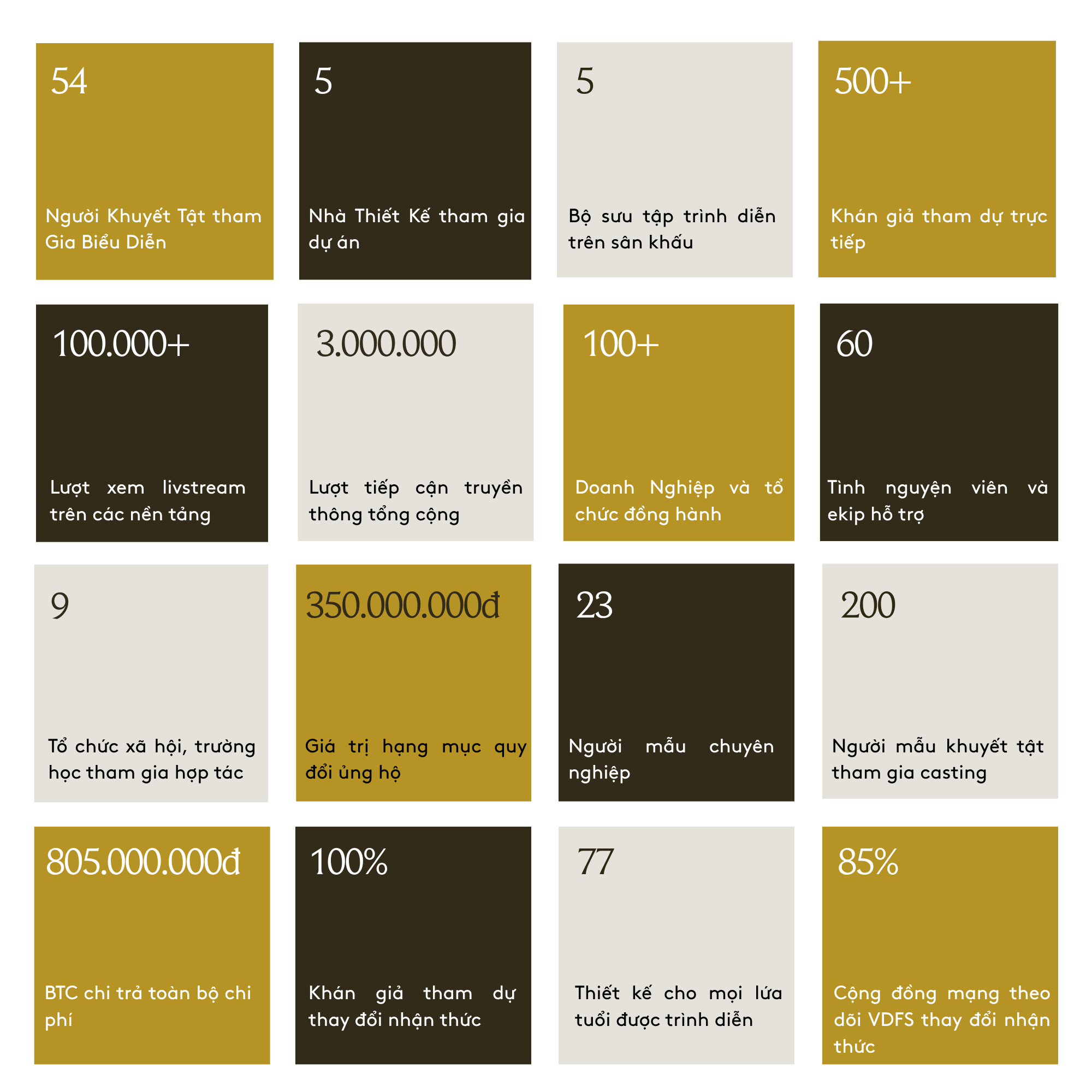 Với sự tham gia của 5 nhà thiết kế, hàng trăm doanh nghiệp và hàng nghìn khán giả, VDFS đã tạo nên một không gian cộng đồng tử tế – nơi người khuyết tật, NTK, sinh viên, truyền thông và doanh nghiệp cùng làm việc vì một mục tiêu chung: “Đẹp hơn để sống tốt hơn.”