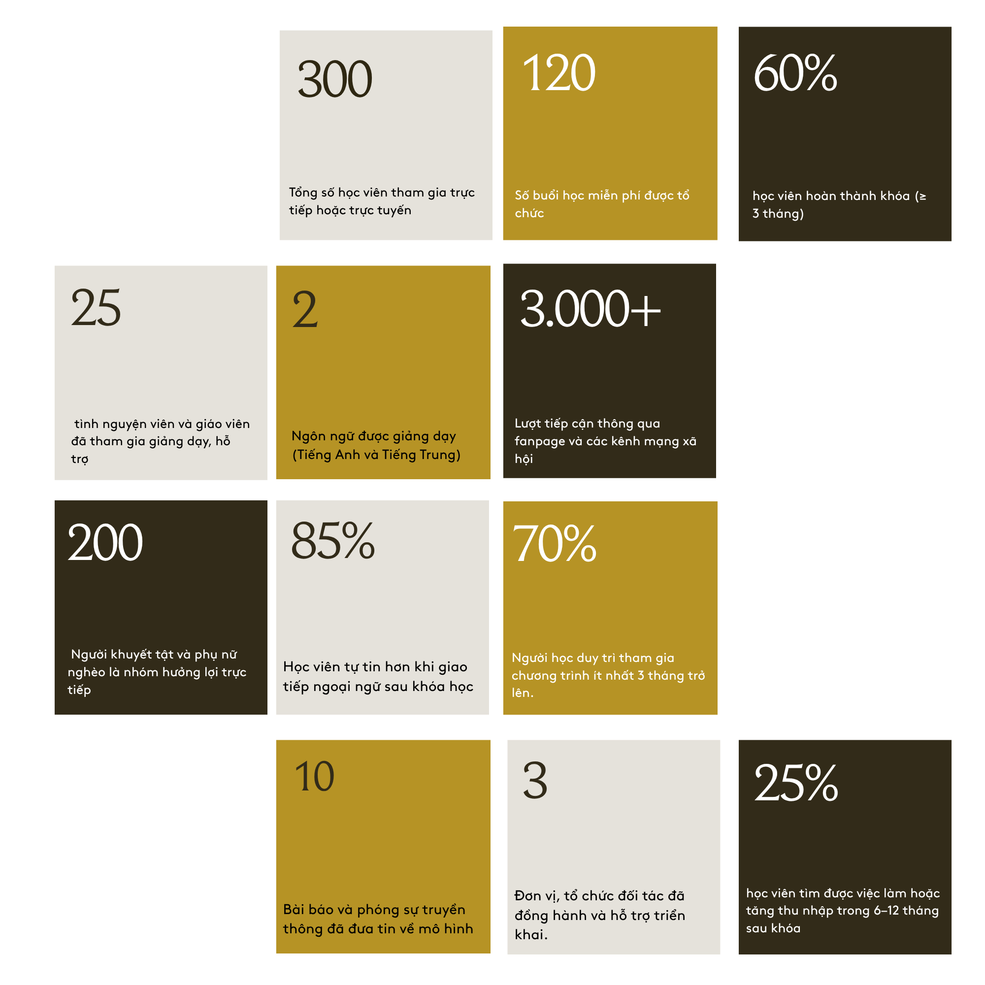 25% học viên tìm được việc làm hoặc tăng thu nhập trong 6–12 tháng sau khóa